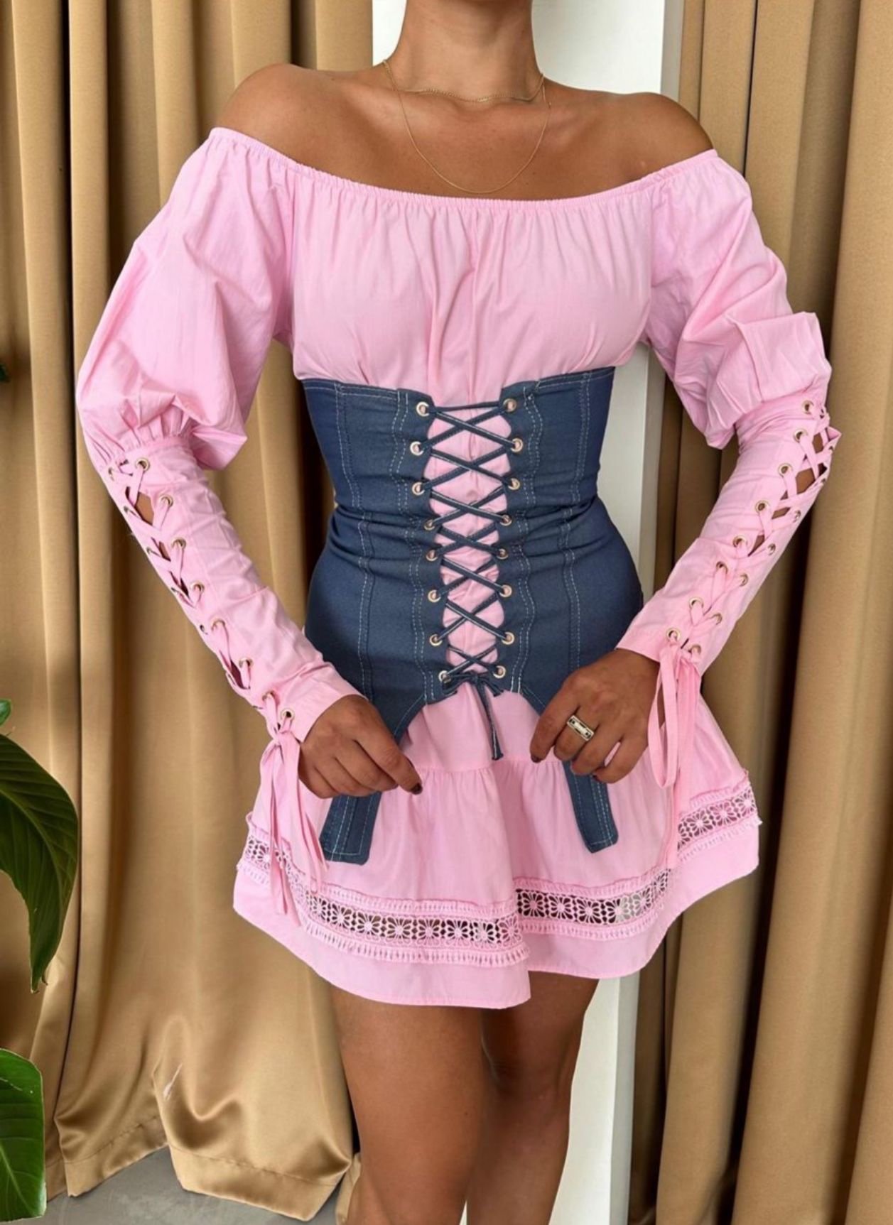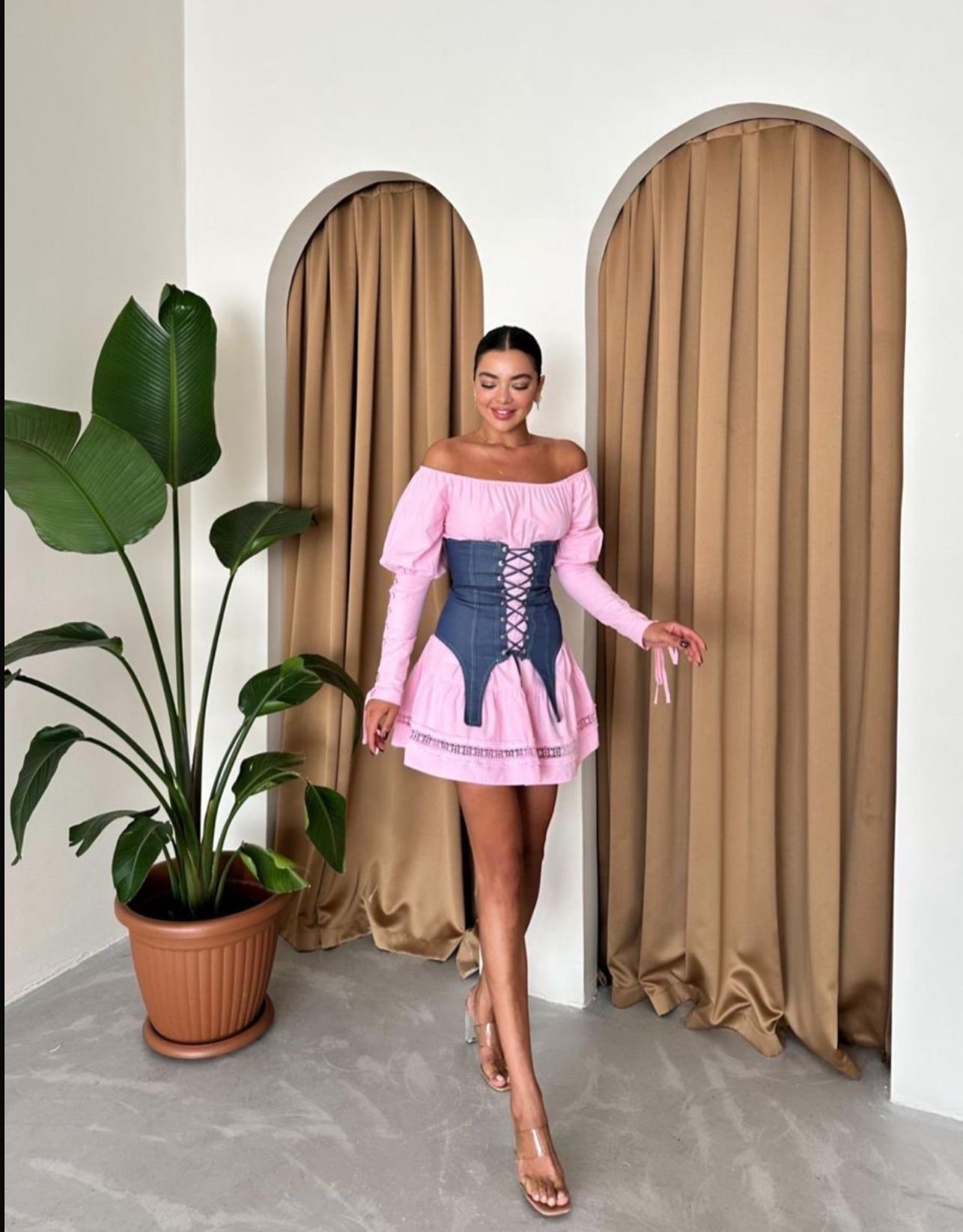 A luxurious pink corset dress
