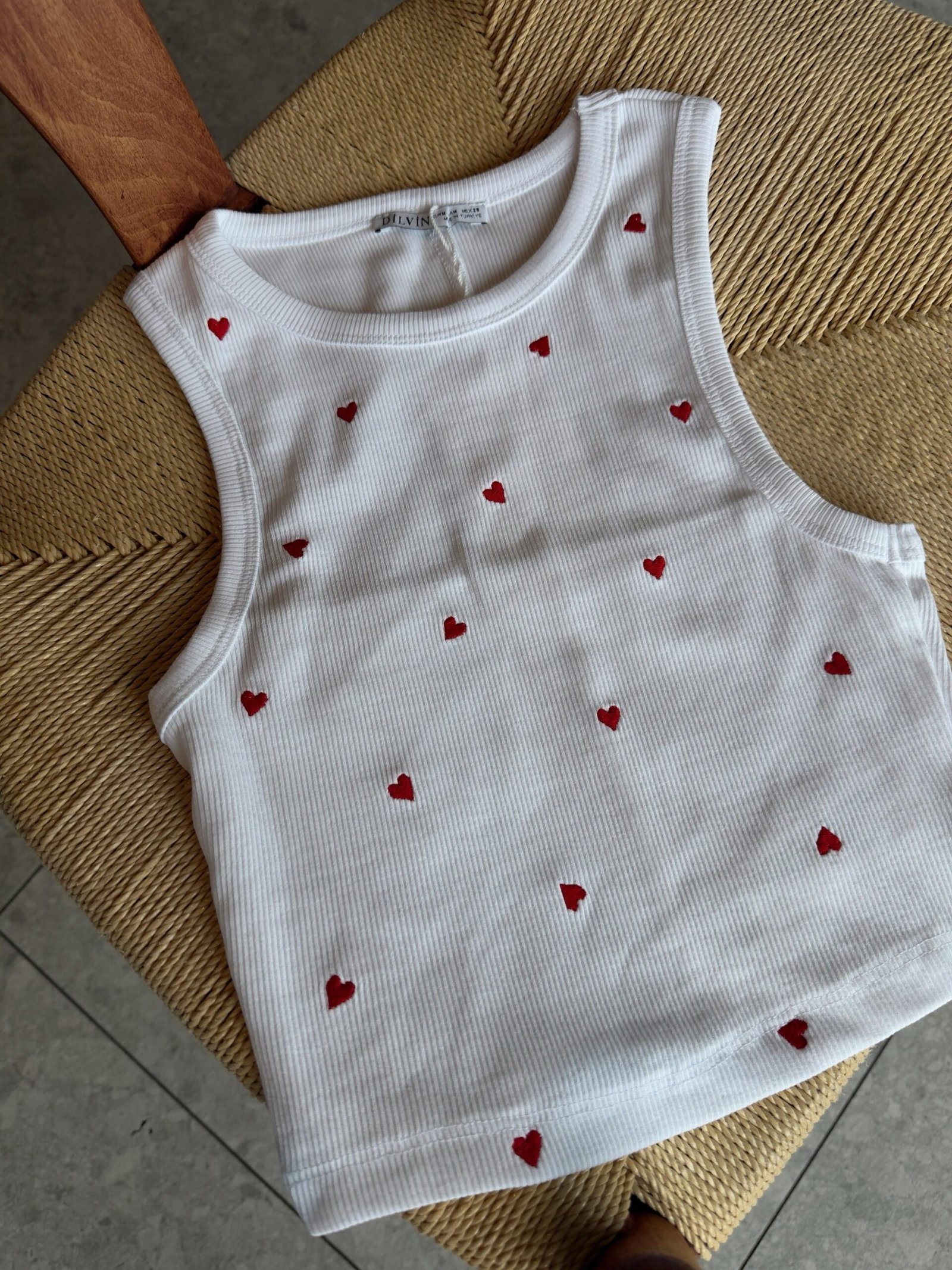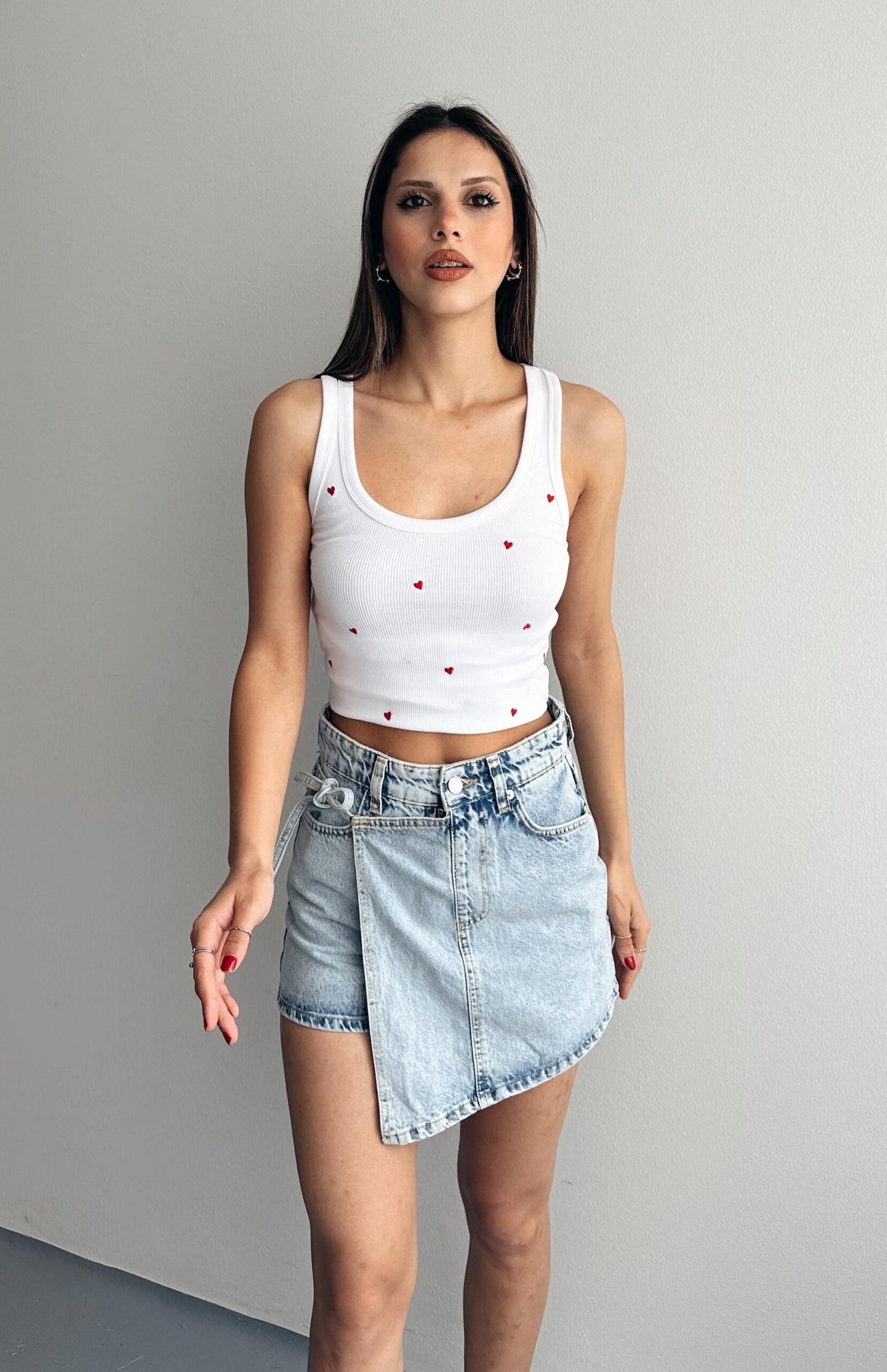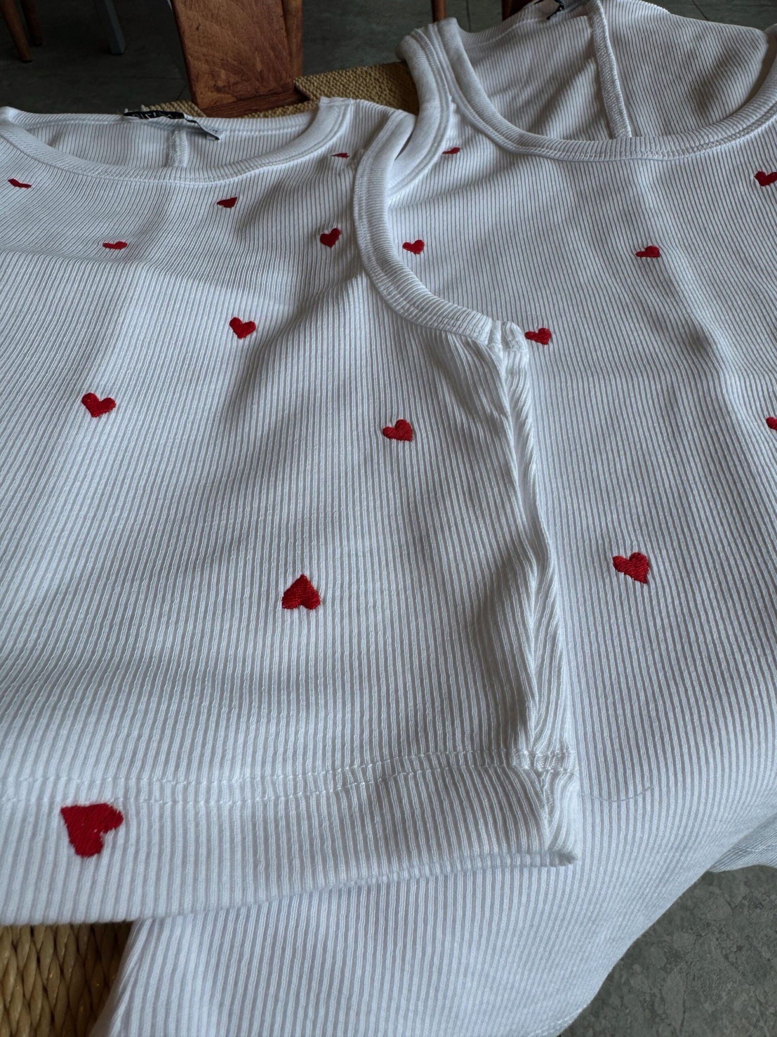 Be the first to review “Dilvin Red Heart Embroidered Crop Top”
