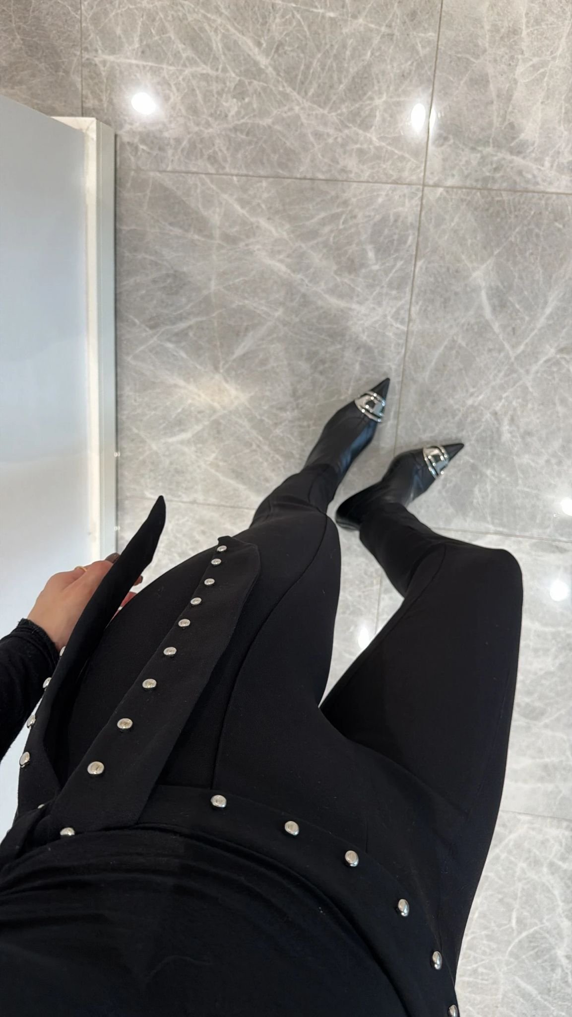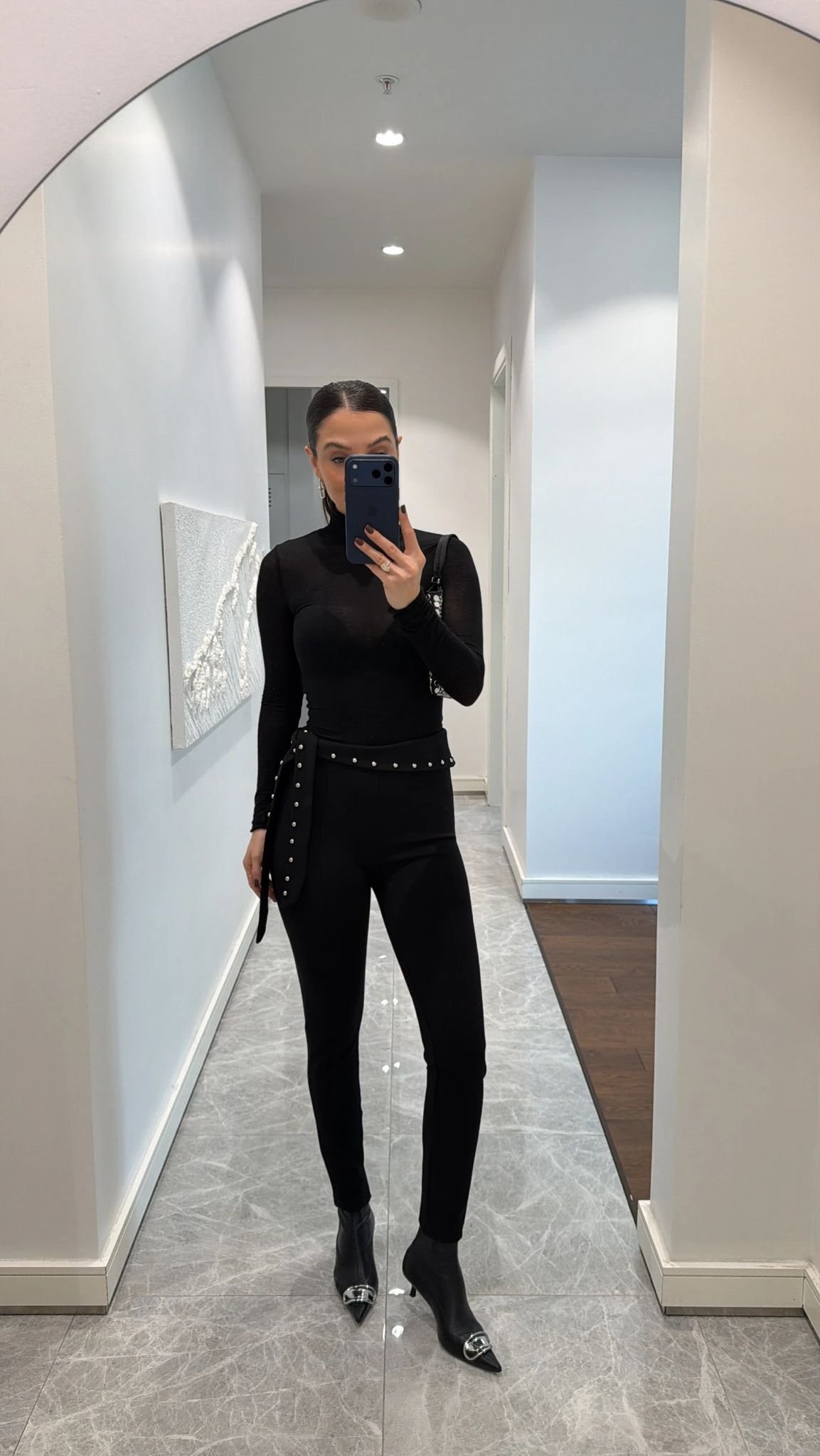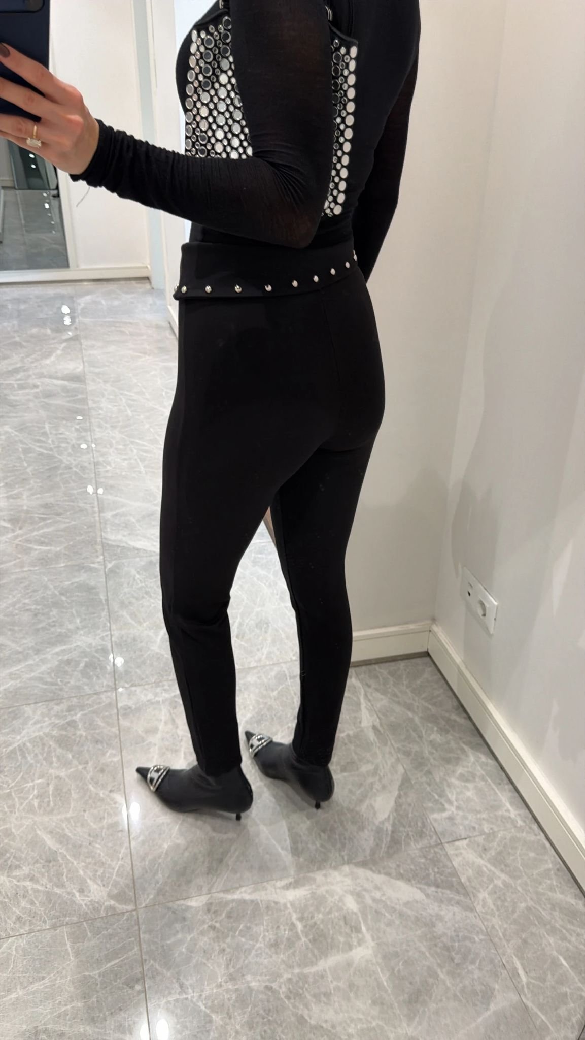 Waist area has silver stone detail.