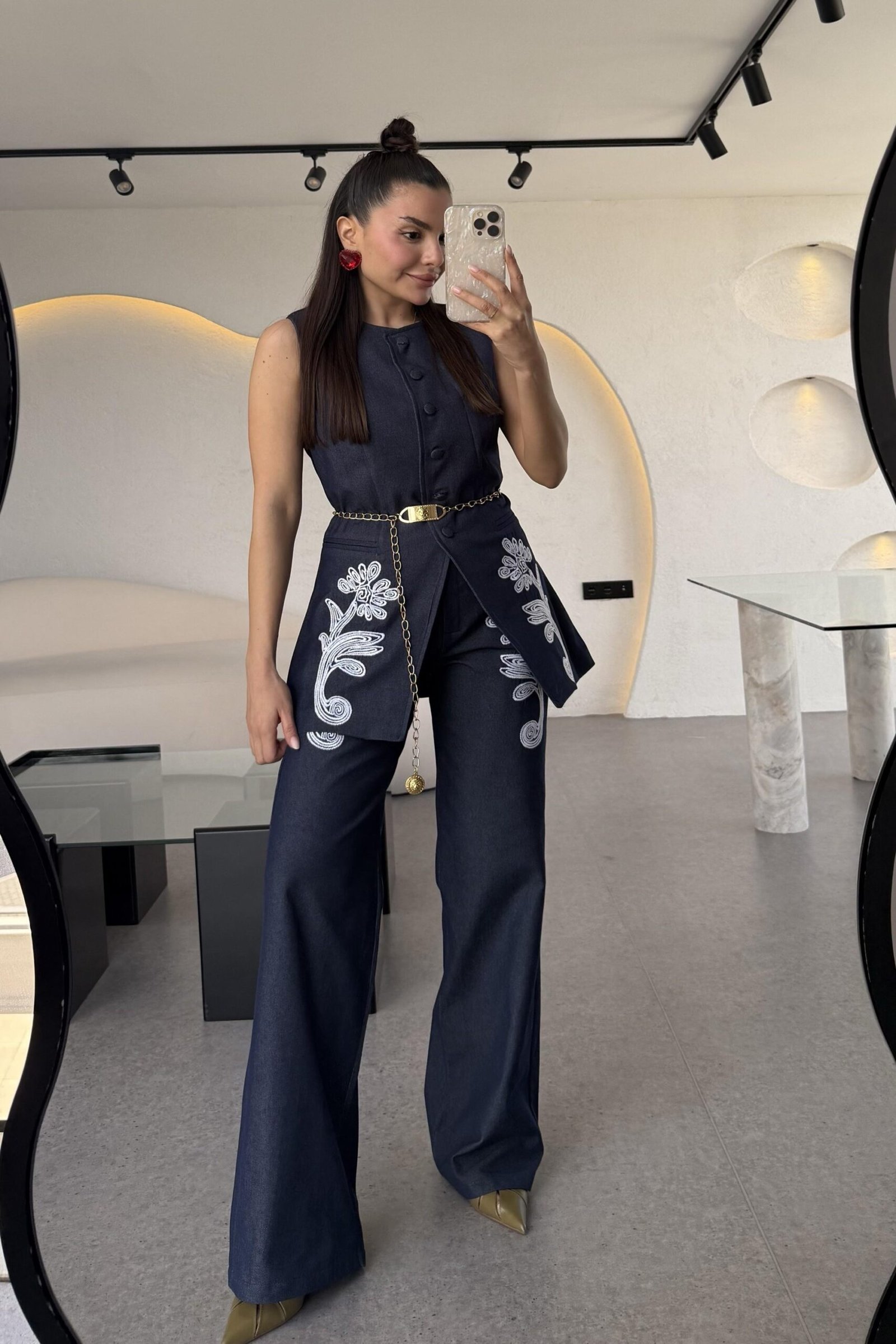 Navy Embroidered Denim Set