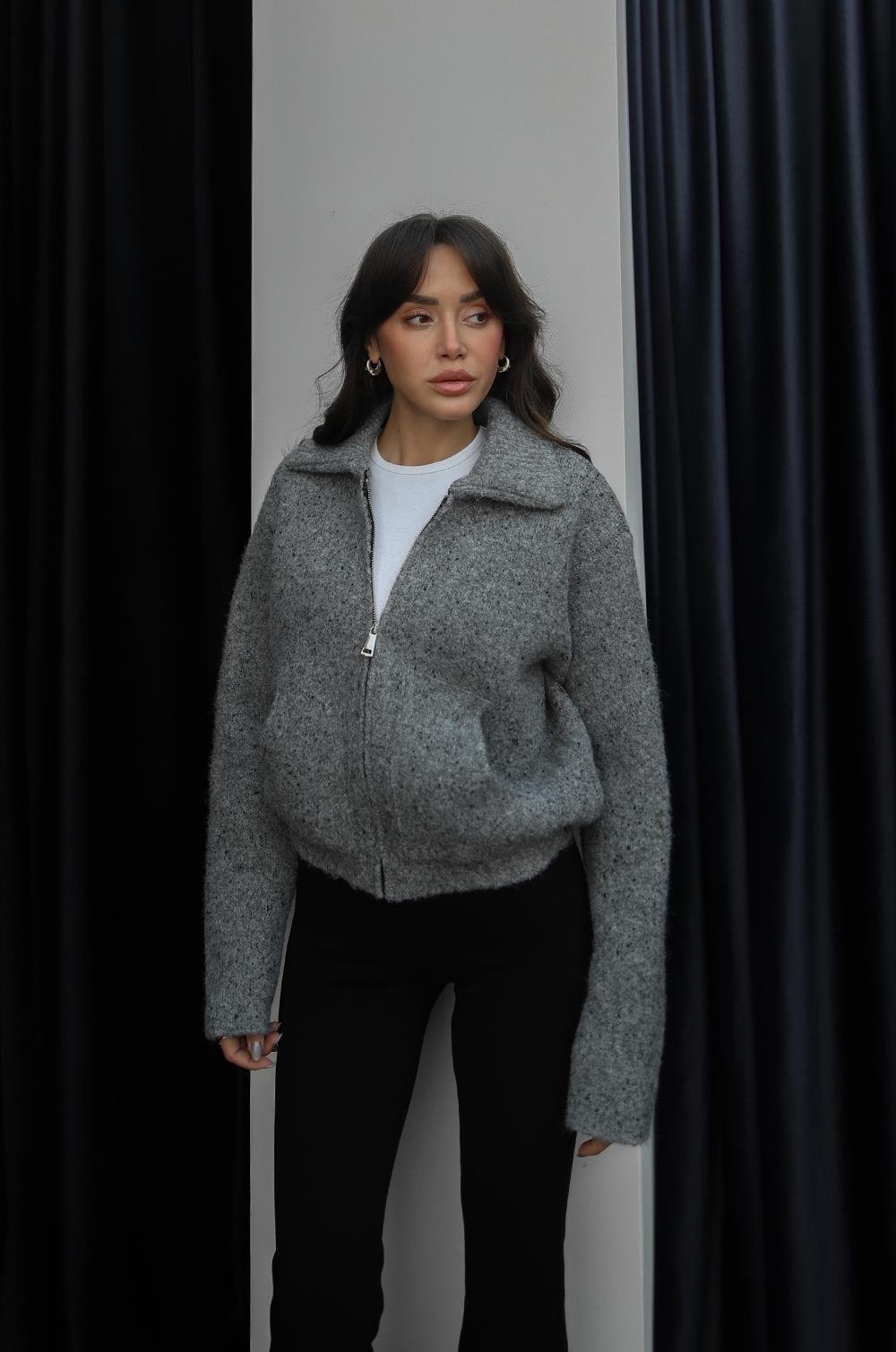 LONG-SLEEVED, LAYERED COLLAR, SIDE POCKETS, FRONT ZIPPER
