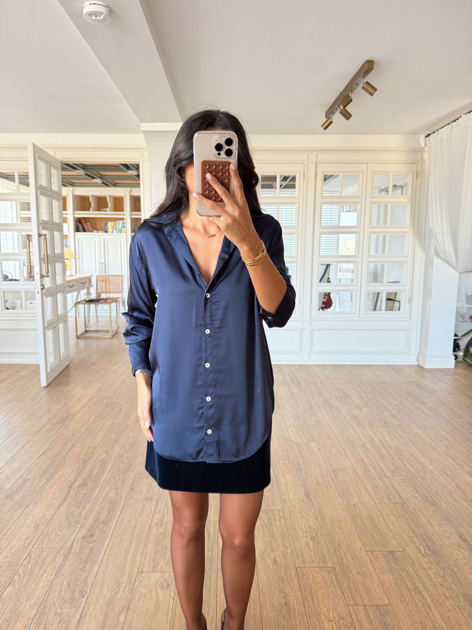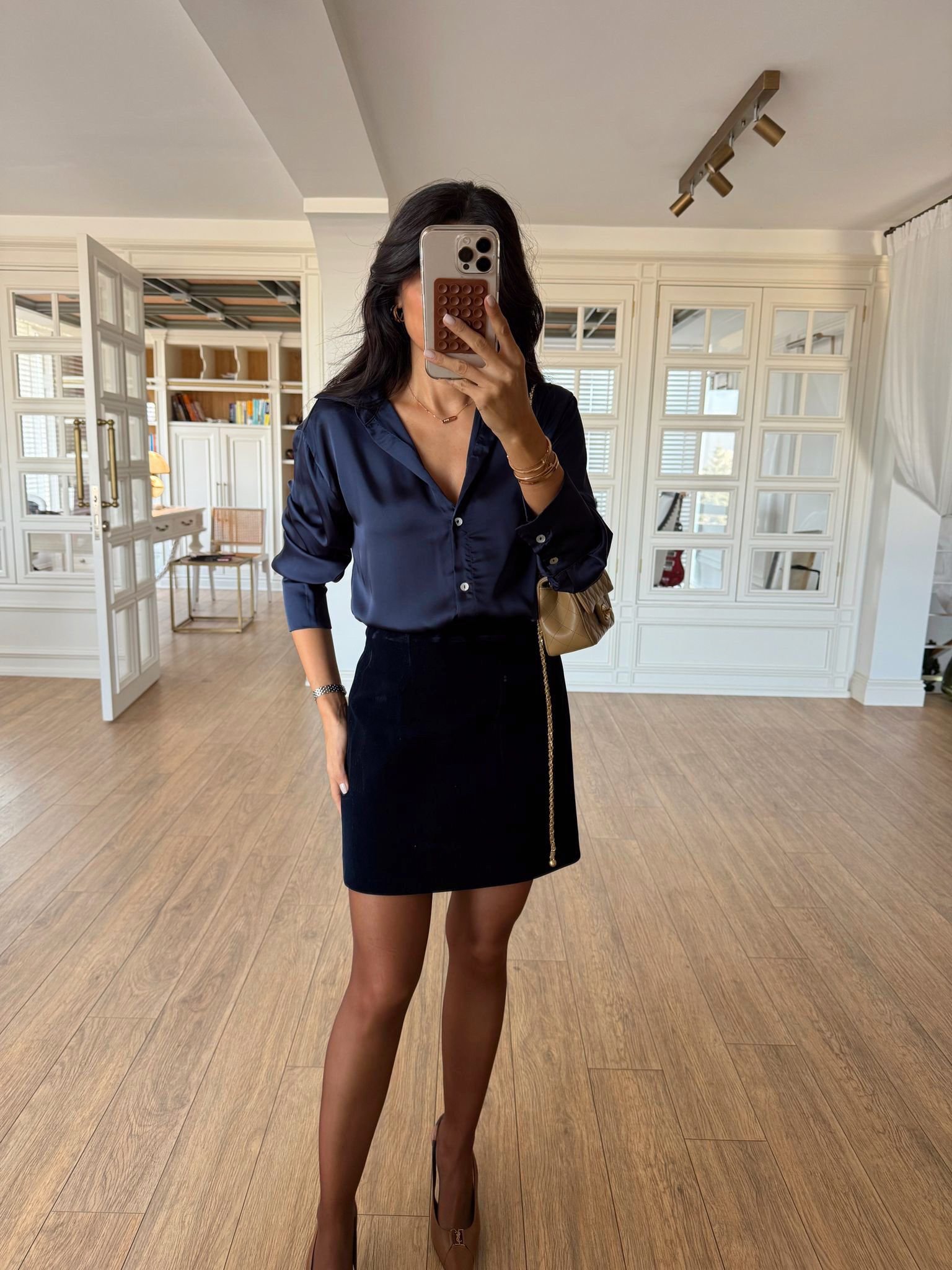 Pair a satin shirt with jeans, trousers, skirt and shorts.