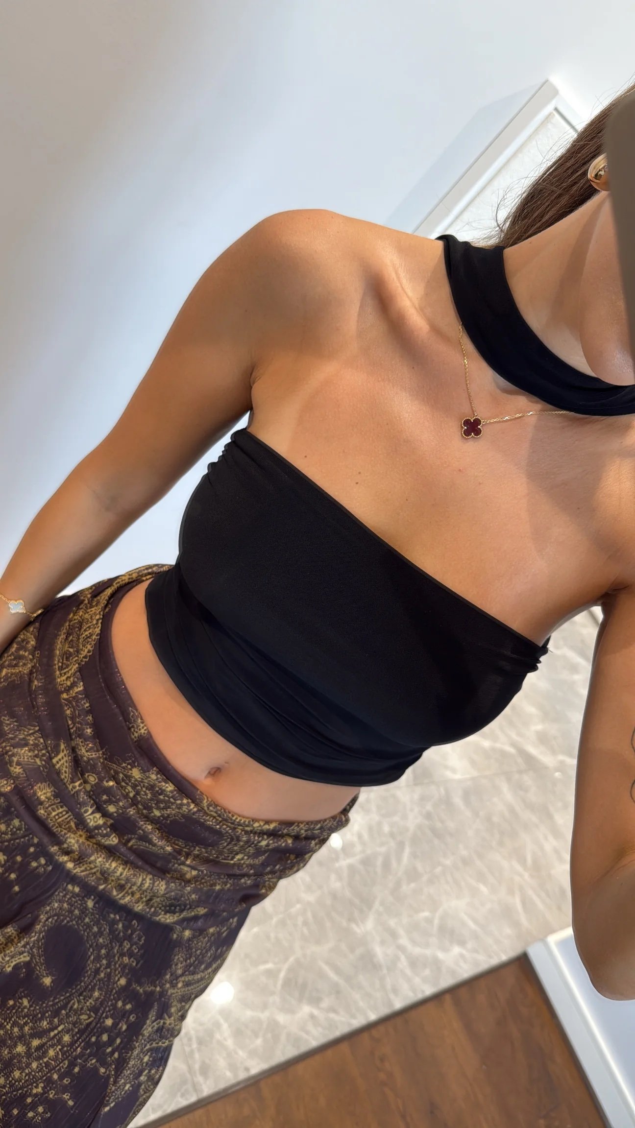 Strapless Crop Blouse with Neck Detail