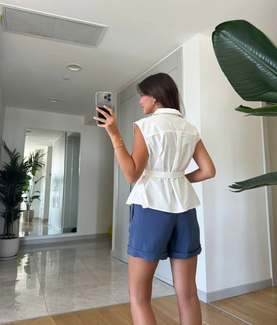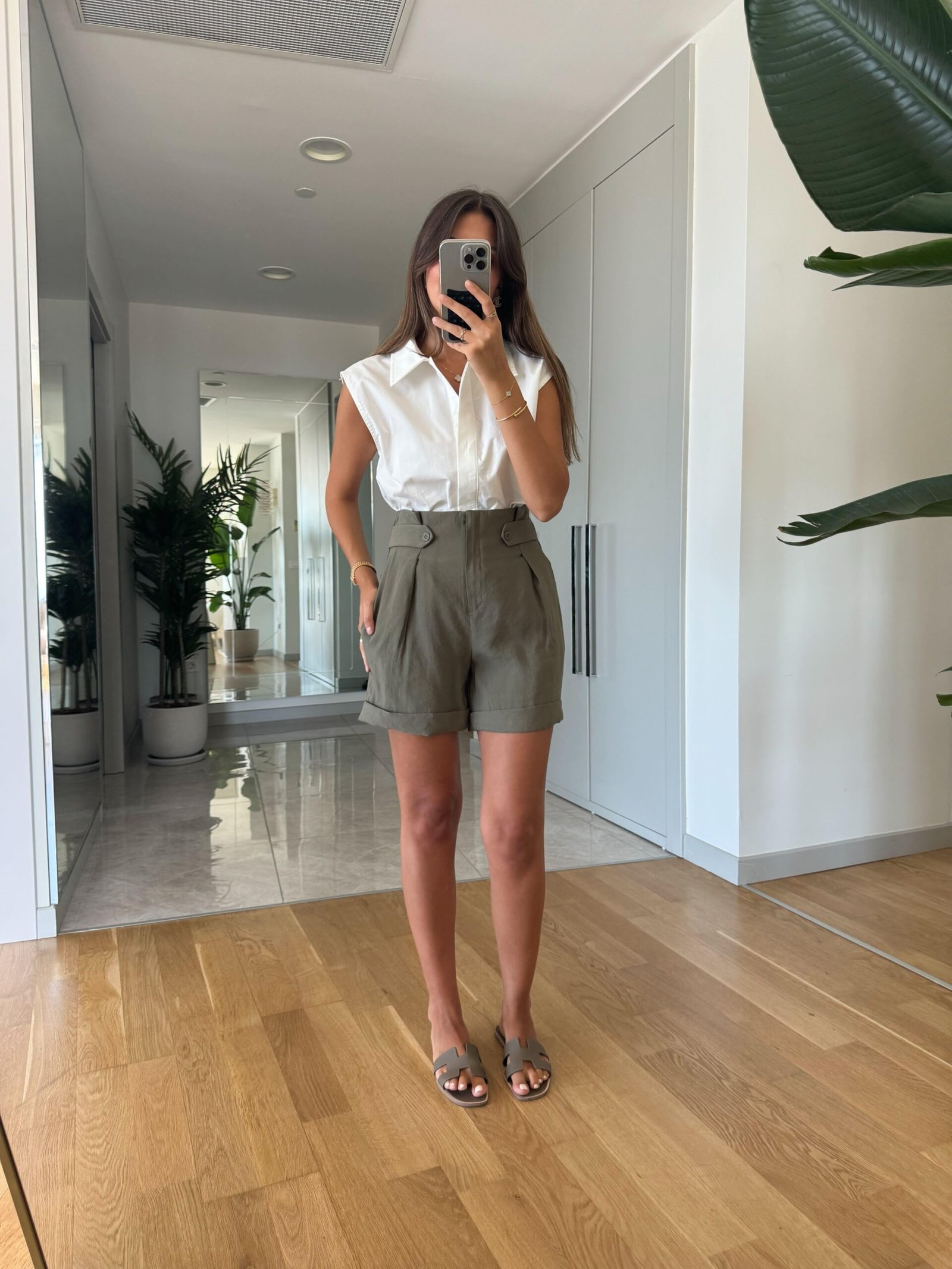 Be the first to review “Tencel Shorts with Button Detail Waist – Khaki”