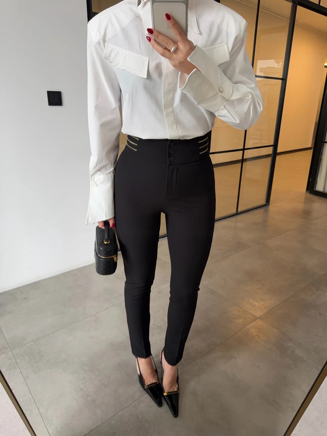 Be the first to review “Tibon Black Waistband Three-Button Trousers with Gold Zipper Detail”