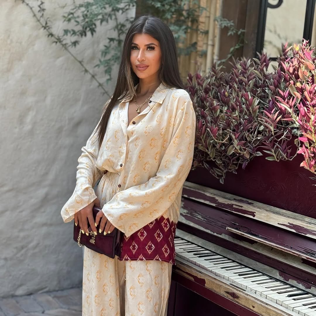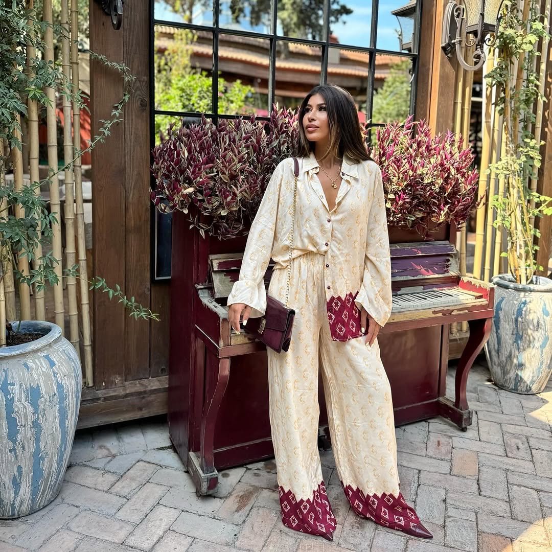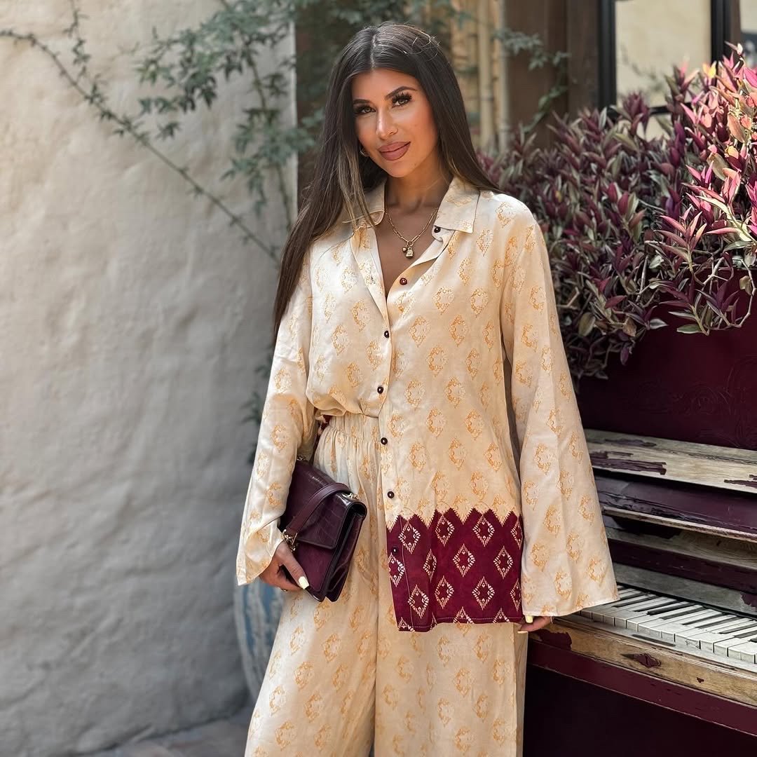 Made from flowing Modal fabric, this stylish set offers all-day comfort and style with its oversized shirt and wide-leg trousers. Thanks to its lightweight fabric made of natural fibers, it doesn’t cause sweating and is ideal for the summer season. Suitable for modest wear.